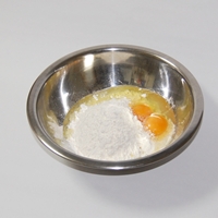 ■ボールに人数分の卵と薄力粉(小麦粉)を入れる