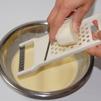 長芋をすりおろして生地にいれます。別の容器にすりおろしてからあわせてもよいです。